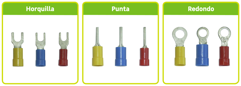 Los terminales redondos se utilizan para conectar cables en aparatos eléctricos, especialmente los que se encuentran en los automóviles. También para uniones de cables con tornillo.